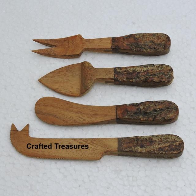 ชุดมีดตัดเนยและพิซซ่าไม้และกระดูกสำหรับใช้ในครัวเรือน