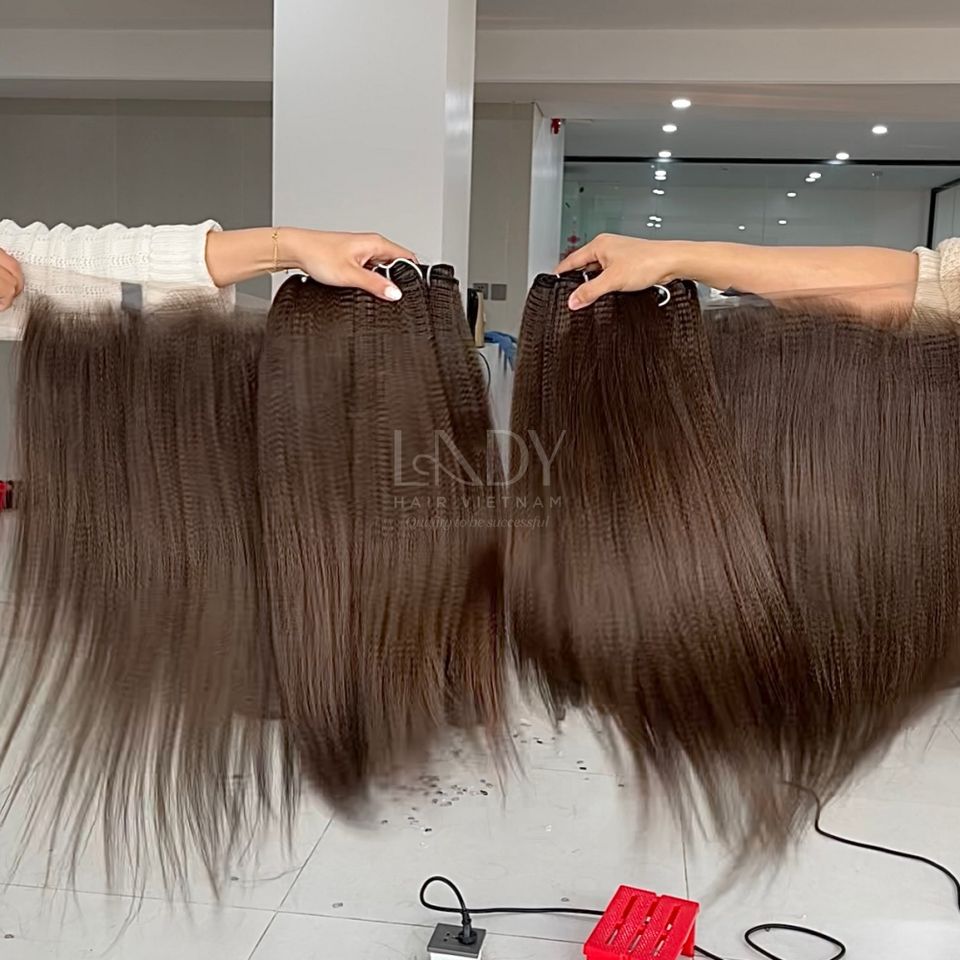 มัดผมตรง yaki ผมปลอมและผมหยิก100% วัสดุผมเวียดนามแบบไม่ผ่านกระบวนการ