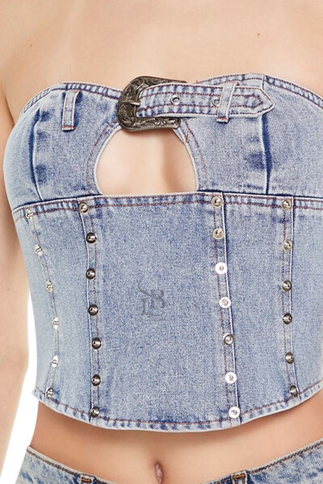 เสื้อเกาะอกผ้ายีนส์ผู้หญิง