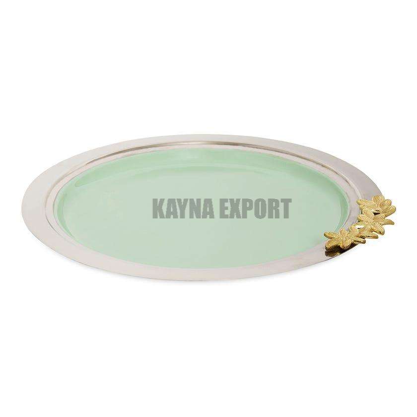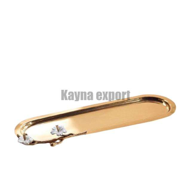 ถาดโลหะสแตนเลสตกแต่งลายนูนพร้อมที่จับดอกไม้สีทองถาดตกแต่งโต๊ะ