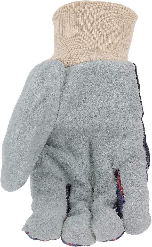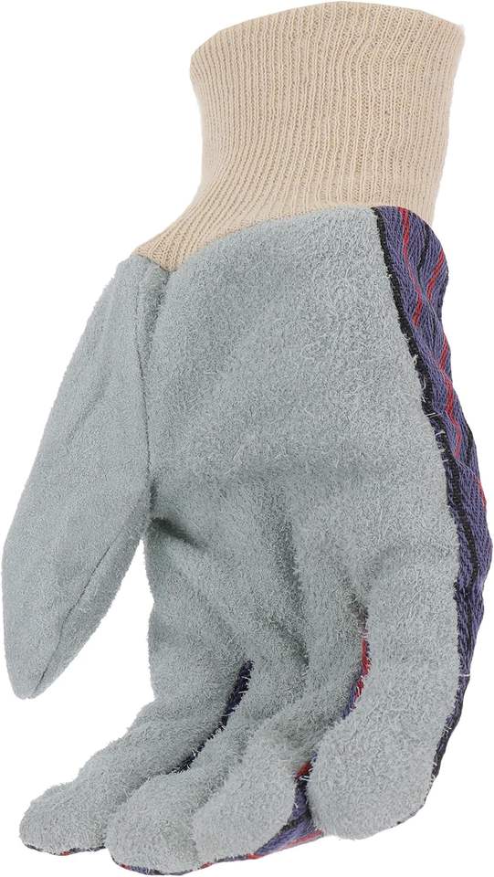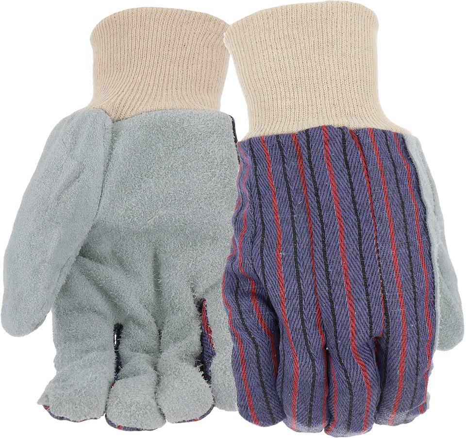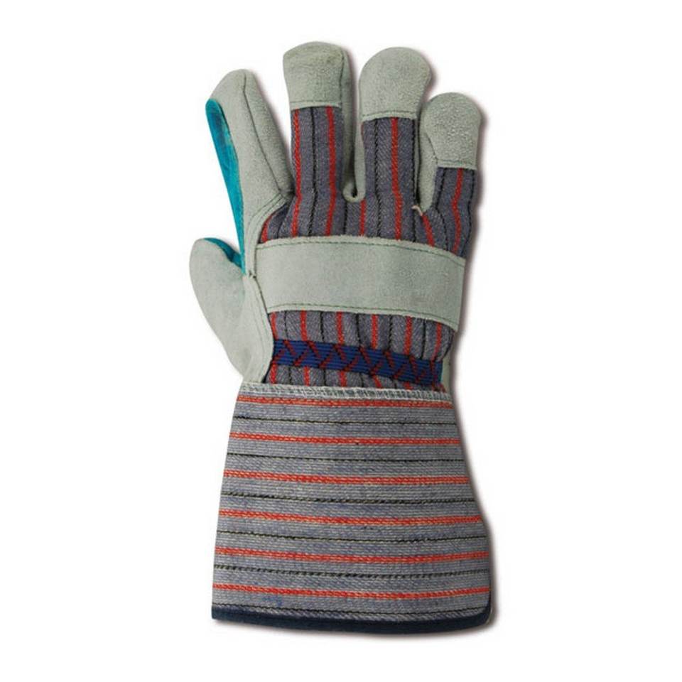 ถุงมือหนังแท้สีเทาแบบขายส่ง ลายทางสีน้ำเงิน ฝ่ามือสองชั้น สำหรับงานเชื่อมโลหะและอุตสาหกรรม สำหรับผู้ชาย