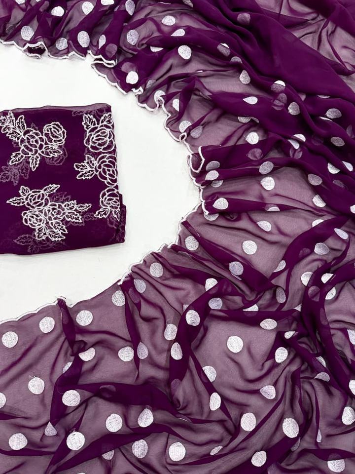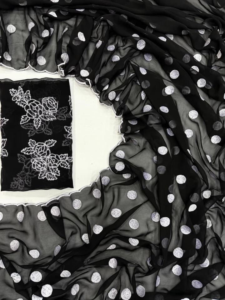 ผ้าซารีจอร์เจตต์ไหมเนื้อนุ่มพรีเมียมขายส่ง พร้อมงานปักลายจุดและขอบผ้าปักลาย สำหรับงานแต่งงานและงานปาร์ตี้