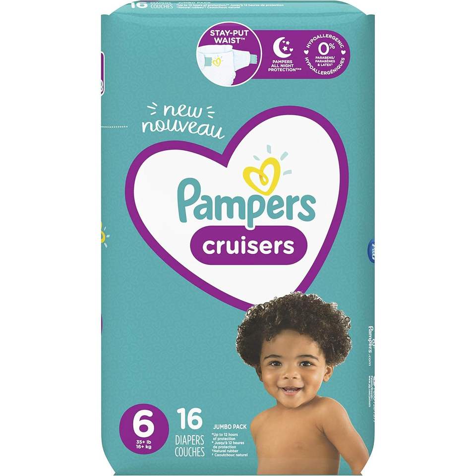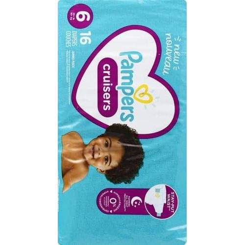 ผ้าอ้อมเด็กแบบพิมพ์ลาย ไซส์ 6 แพ็คใหญ่ 16 ชิ้น สำหรับเด็กน้ำหนัก 28 ถึง 45 ปอนด์ ป้องกันการเลื่อนหลุด พร้อมแถบรัดเอว