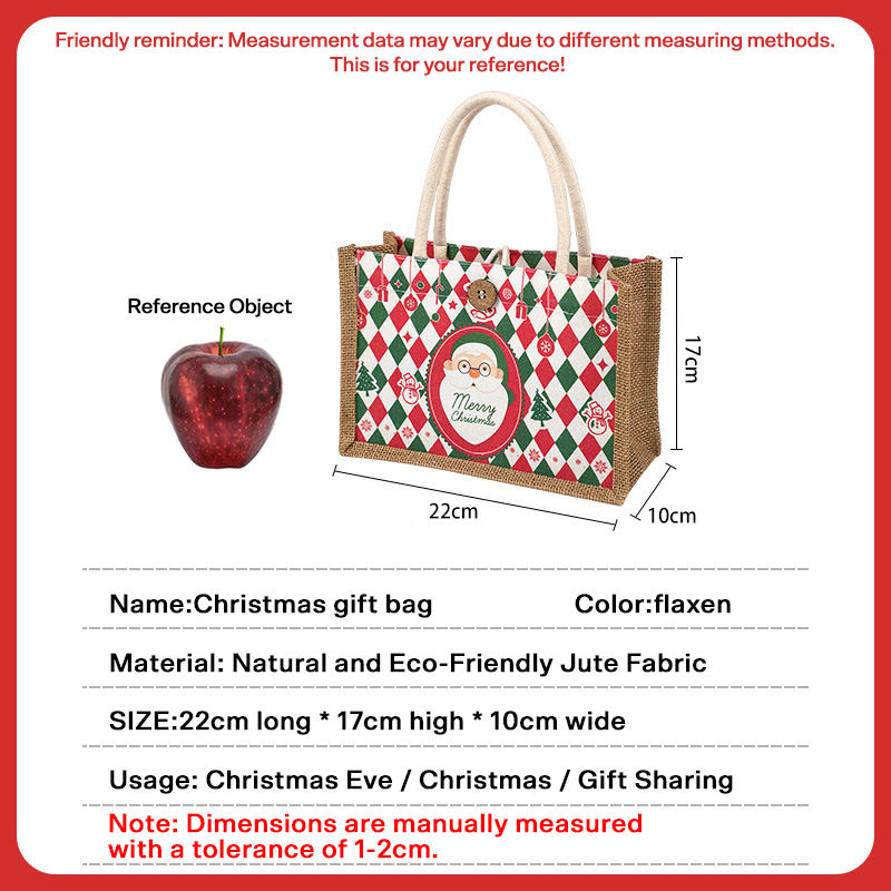 Wholesale Printed Large Natural Eco Friendly Gift Canvas Jute Bag Custom Merry Christmas Jute Tote Bag