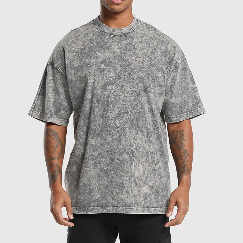 เสื้อยืดผู้ชายสไตล์วินเทจผ้าเจอร์ซีย์โอเวอร์ไซส์ผ้าฝ้ายเฮฟวี่เวทผ้าถักแบบลำลองออกแบบได้ตามต้องการ