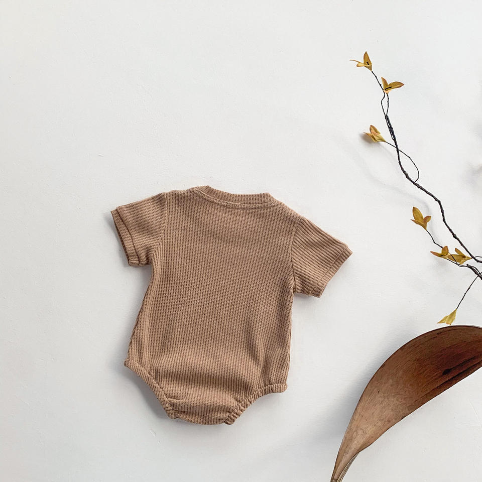เสื้อผ้าเด็กขายส่งแบบ Private Label สีพื้นธรรมชาติ ชุดรอมเปอร์เด็กแบบกลางๆ แขนสั้น เสื้อผ้าเด็กผู้ชายสำหรับฤดูร้อน