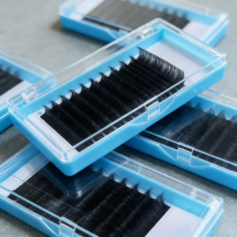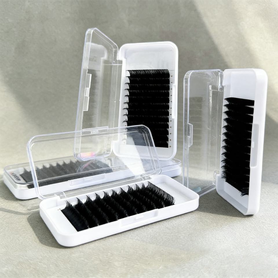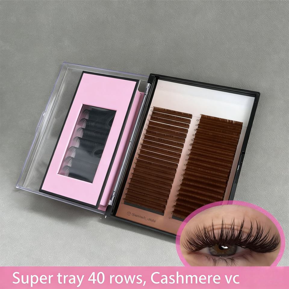 ถาดขนตาแคชเมียร์แบบขายส่ง แบรนด์ส่วนตัว สีดำด้าน รัสเซียนวอลุ่ม 0.03 0.05 ขนตาต่อแบบเส้นต่อเส้น