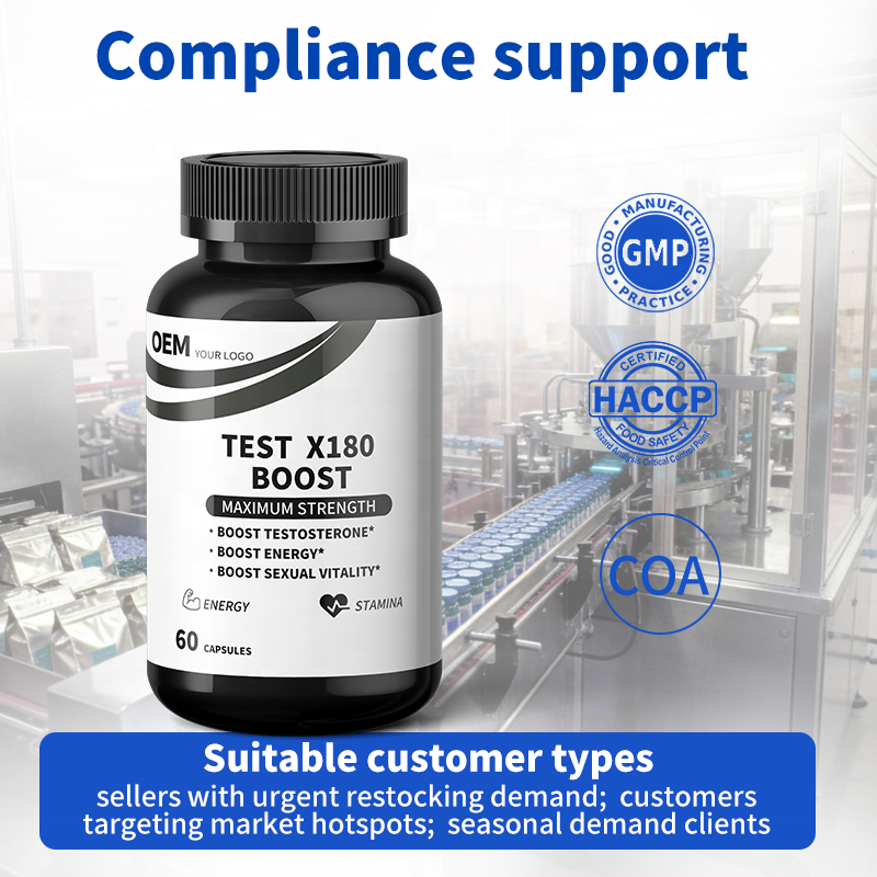 อาหารเสริมเพิ่มสมรรถภาพทางเพศชายแบบขายส่ง Test X180 Boost Booster Capsules จัดส่งระยะยาวอย่างมั่นคงสำหรับผู้ค้าระหว่างประเทศ