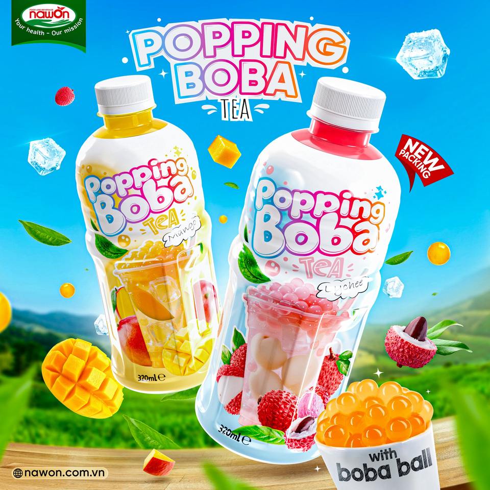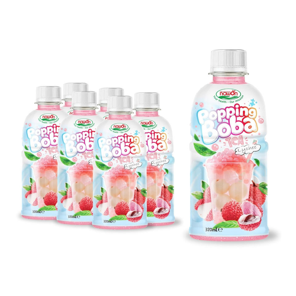 ชาพีชเย็นแบบขวด 320 มล. ตราสินค้าสั่งผลิต พร้อมไข่มุกป๊อปปิ้ง ตัวอย่างฟรี ได้รับการรับรองมาตรฐาน ISO HACCP โรงงานนาวอน
