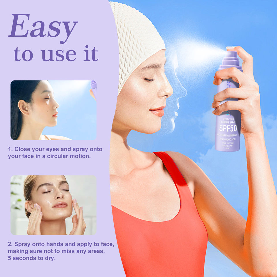 สเปรย์กันแดดกันแดดร่างกายใบหน้า SPF 50 UVA UVB เพื่อความขาวกันน้ำ