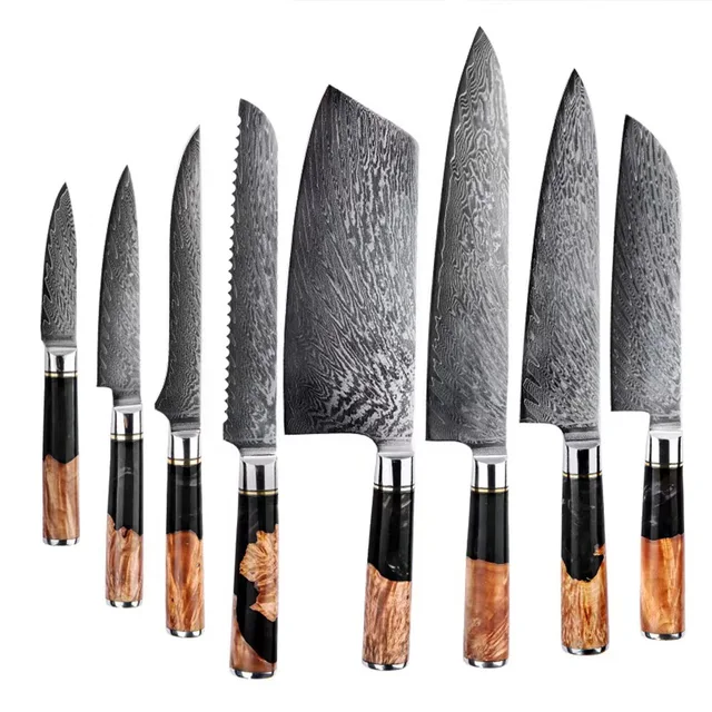 ชุดมีดทำครัวสำหรับเชฟมืออาชีพ ขายส่งจากโรงงานโดยตรง มีดแล่เนื้อ 8 ชิ้น คุณภาพดีที่สุด ทำจากสแตนเลส ด้ามไม้