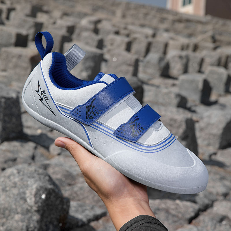 รองเท้าปีนเขาแบบมืออาชีพสำหรับขายส่ง ทำจากไมโครไฟเบอร์ หัวแหลม ใช้ได้ทั้งในร่มและกลางแจ้ง สำหรับปีนบouldering สายรัดแบบเวลโครคู่ พื้นยางกันลื่น จำหน่ายจำนวนมาก