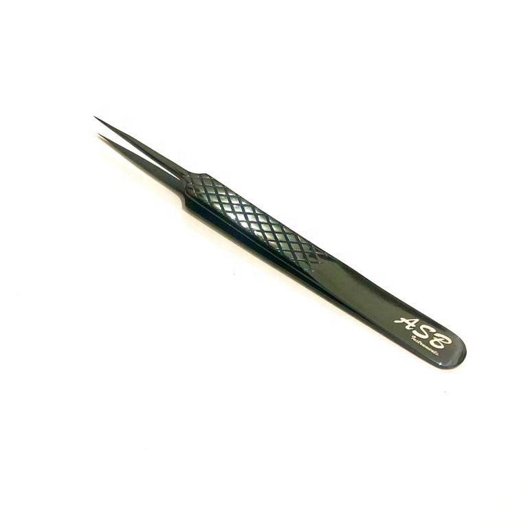 แหนบปลายแหลมสำหรับต่อขนตาแหนบสเตนเลสพลาสม่าสีดำแบบยั่งยืนโลโก้ตามสั่ง