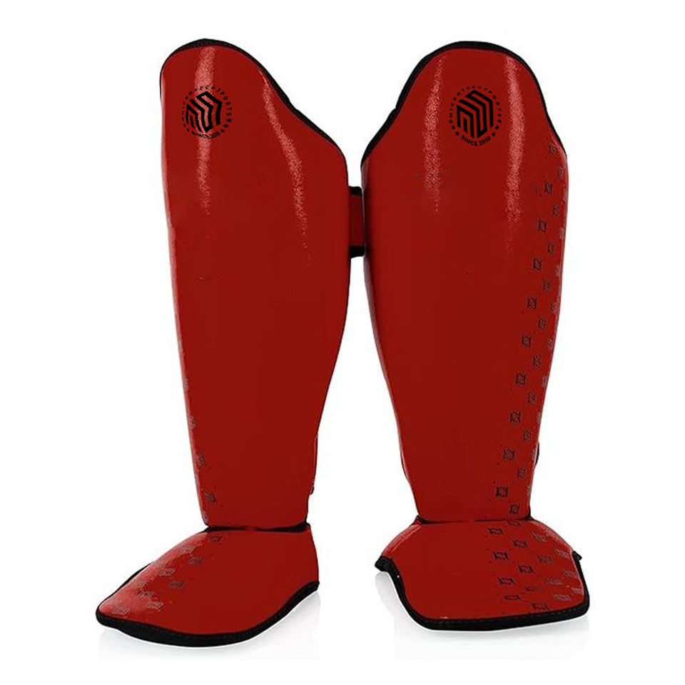 สนับแข้งโฟมโพลียูรีเทนสีดำออกแบบได้เองสำหรับคิกบ็อกซิ่งมวยไทย MMA เทควันโดโลโก้ตามต้องการ