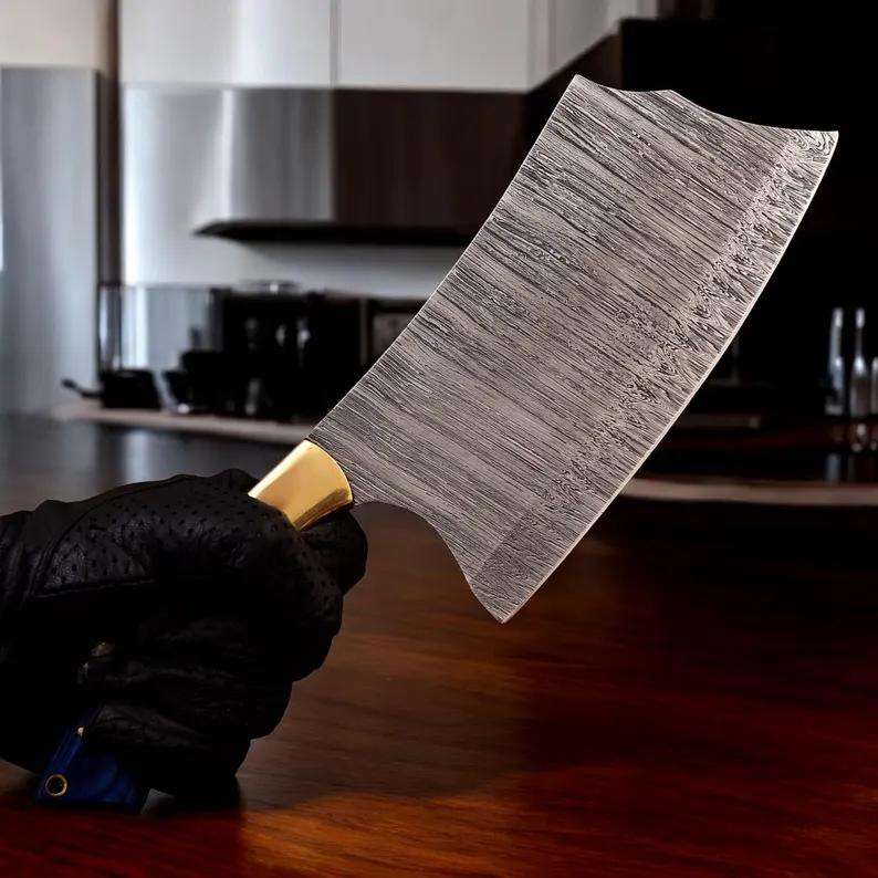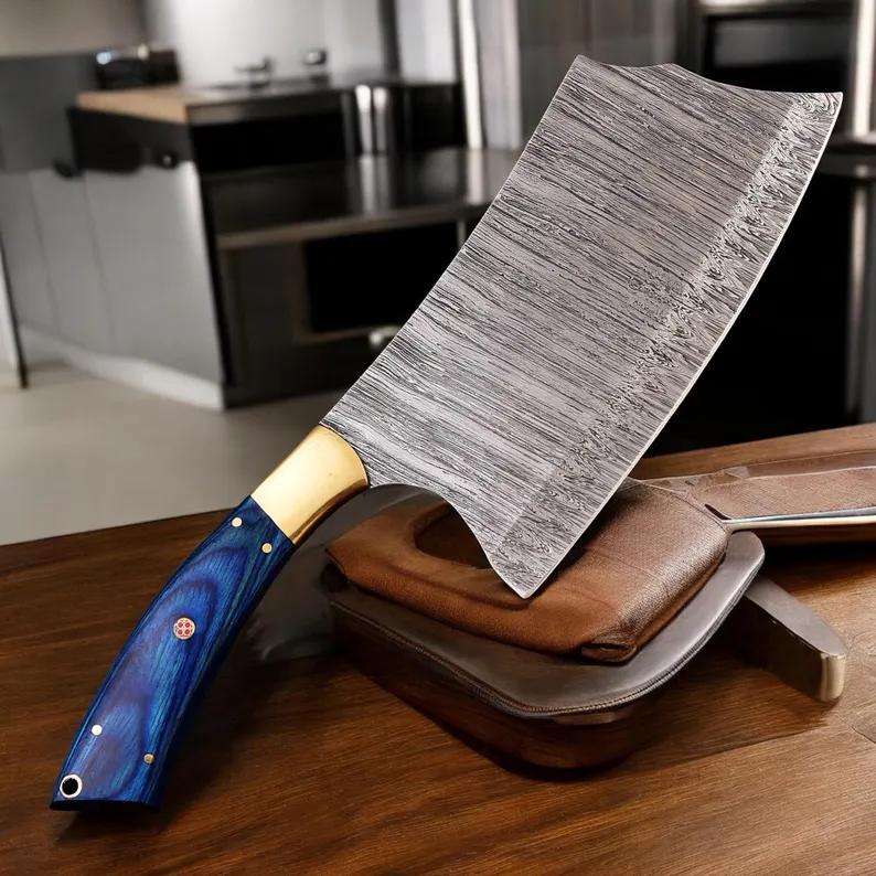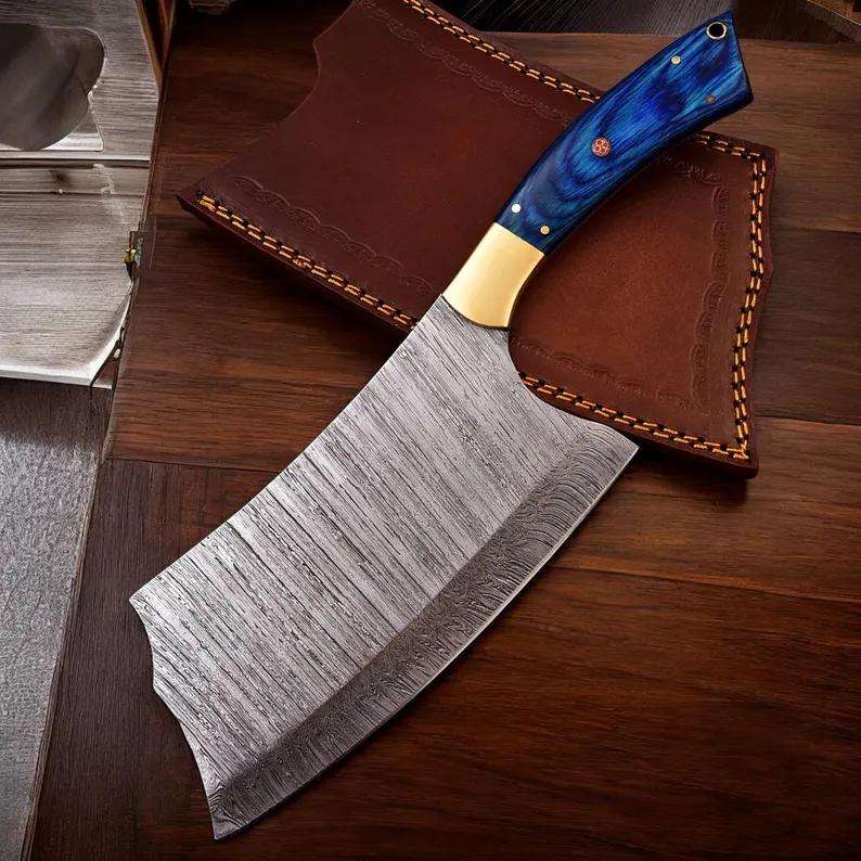 มีดสับเนื้อวัวคุณภาพสูงระดับมืออาชีพ ผลิตจากเหล็กกล้าดามัสกัสและสแตนเลส ด้ามไม้ งานฝีมือ สำหรับขายส่ง