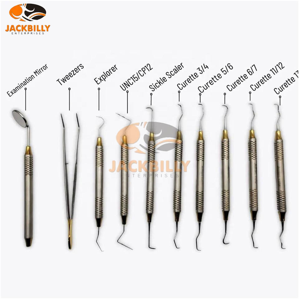 ชุดเครื่องมือทันตแพทย์มืออาชีพสำหรับทำความสะอาดฟันแบบครบชุด ผลิตจากสแตนเลสอย่างดี ได้รับการรับรองมาตรฐาน CE สำหรับการดูแลสุขภาพช่องปาก