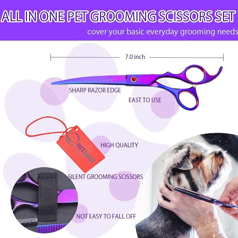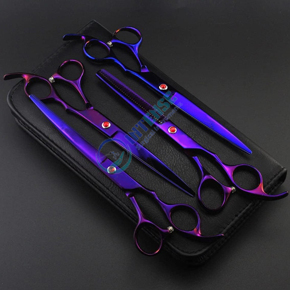 ชุดกรรไกรตัดขนสัตว์เลี้ยงแบบมืออาชีพชุดกรรไกรตัดผมสุนัขชุดสแตนเลสสำหรับร้านเสริมสวยและใช้ในบ้าน