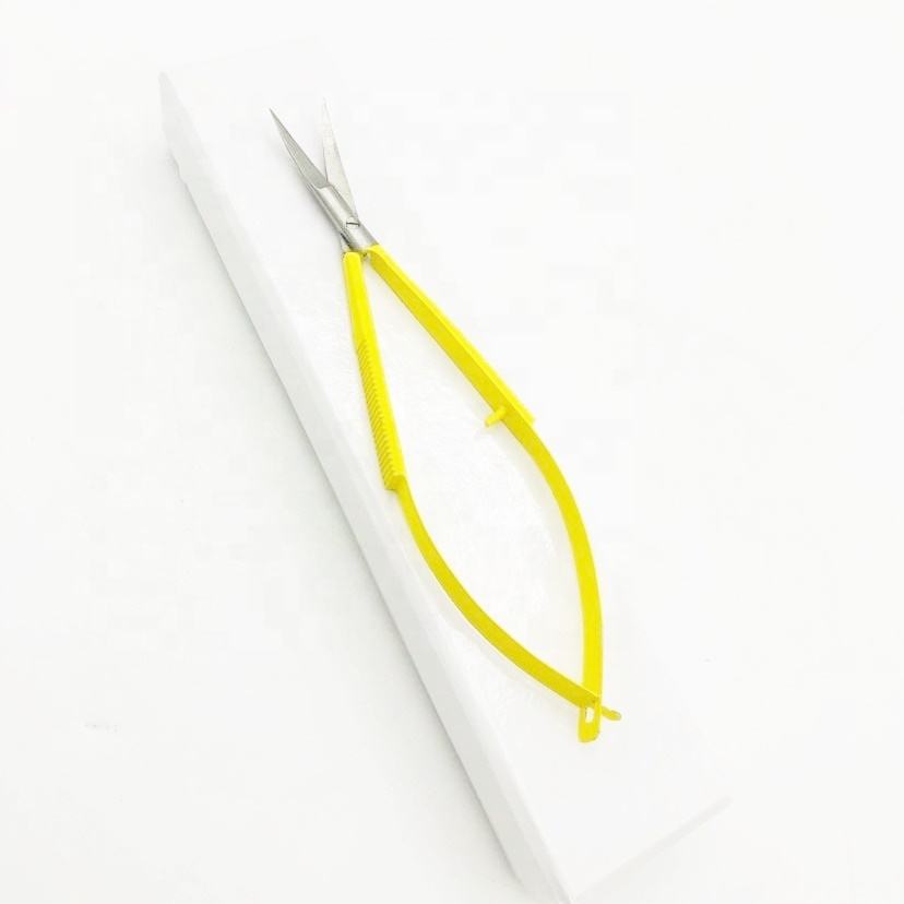 กรรไกรตัดขนตาปลายแหลมทำจากสเตนเลสสตีลแข็งแบบมืออาชีพกรรไกรแต่งคิ้วคุณภาพสูงแบบสปริง