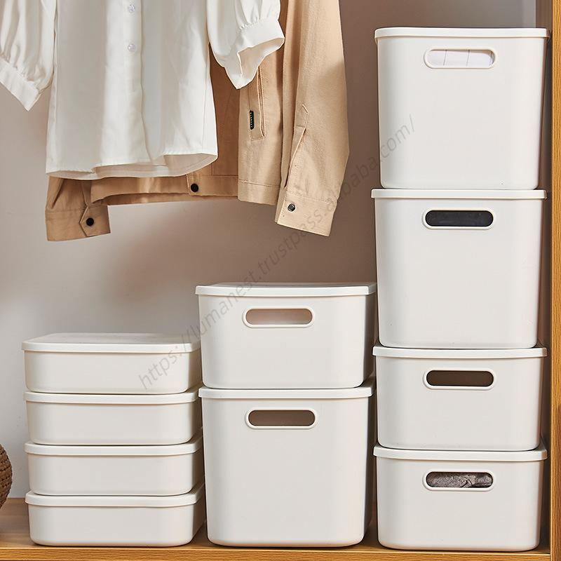 กล่องเก็บของพลาสติก Proins พร้อมฝาปิด หลายขนาด สีขาว สำหรับห้องครัว ห้องน้ำ กล่องจัดระเบียบแบบซ้อนได้ สำหรับใช้ในบ้าน ขายส่ง