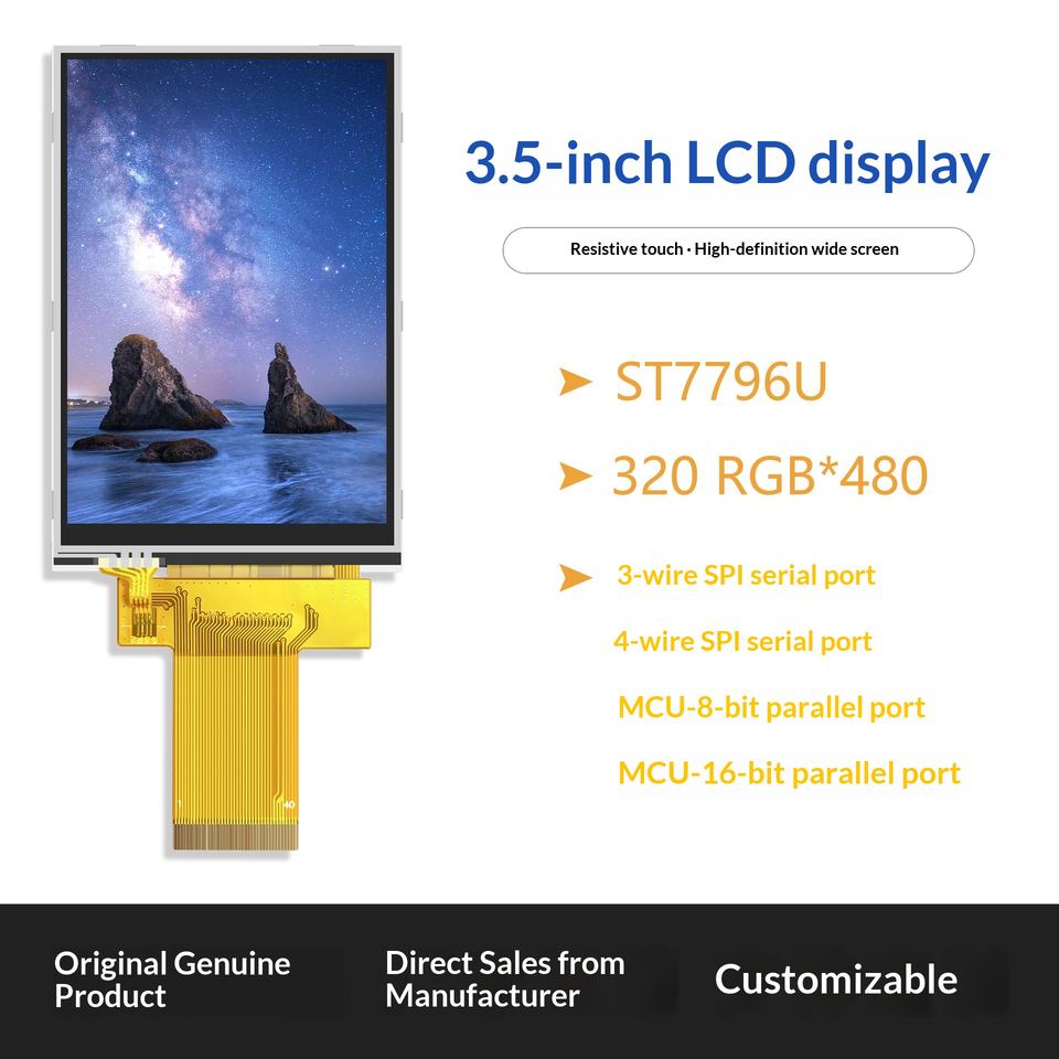 หน้าจอ LCD TFT ขนาด 3.5 นิ้ว ความละเอียด 320*480 พร้อมไฟแบ็คไลท์ LED อินเทอร์เฟซ SPI แบบสัมผัส Resistive Capacitive ขั้วต่อ 40 พิน สำหรับงานอุตสาหกรรม ขายส่ง