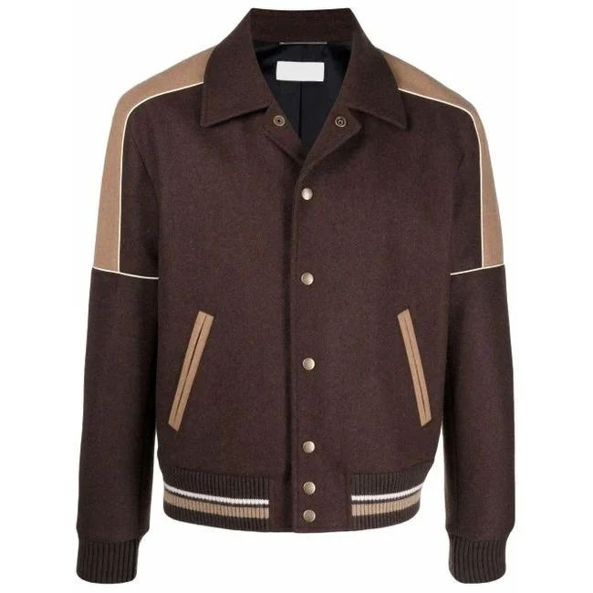 เสื้อแจ็คเก็ตเบสบอลแบบลำลองคุณภาพสูง พิมพ์ลายพัฟฟ์ แบบกำหนดเองได้ พร้อมโลโก้ด้านหน้า วัสดุหนัง/ขนสัตว์ สำหรับผู้ชาย ขายส่ง