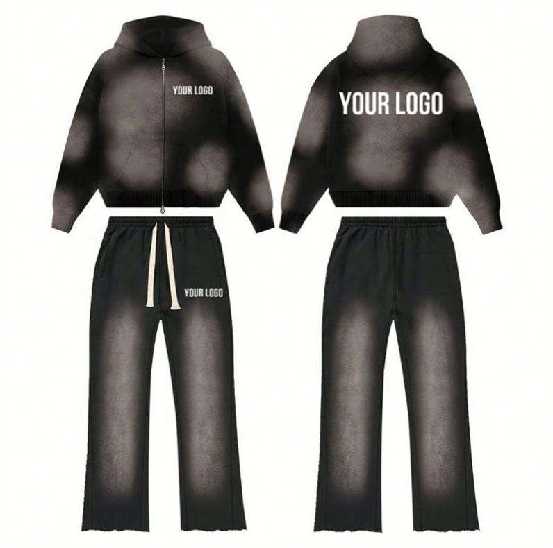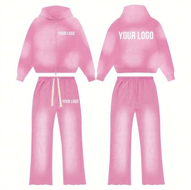 ชุดวอร์มใส่ได้ทั้งชายและหญิงชุดเสื้อมีฮู้ดและกางเกงขายาวทรงโอเวอร์ไซส์ล้างออกธรรมดาแบบสวมหัว