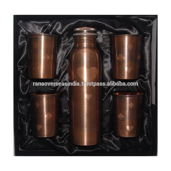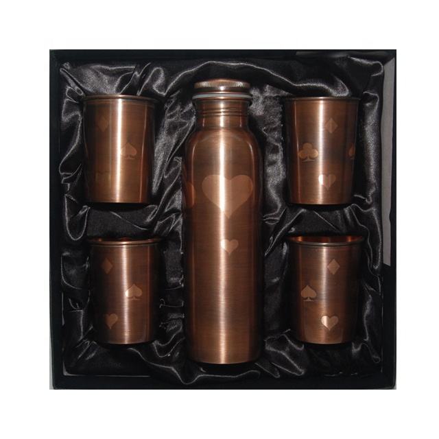 Wholesale Pure Copper Water Bottle With Four Glass for Christmas Diwali Wedding and Return Gifts