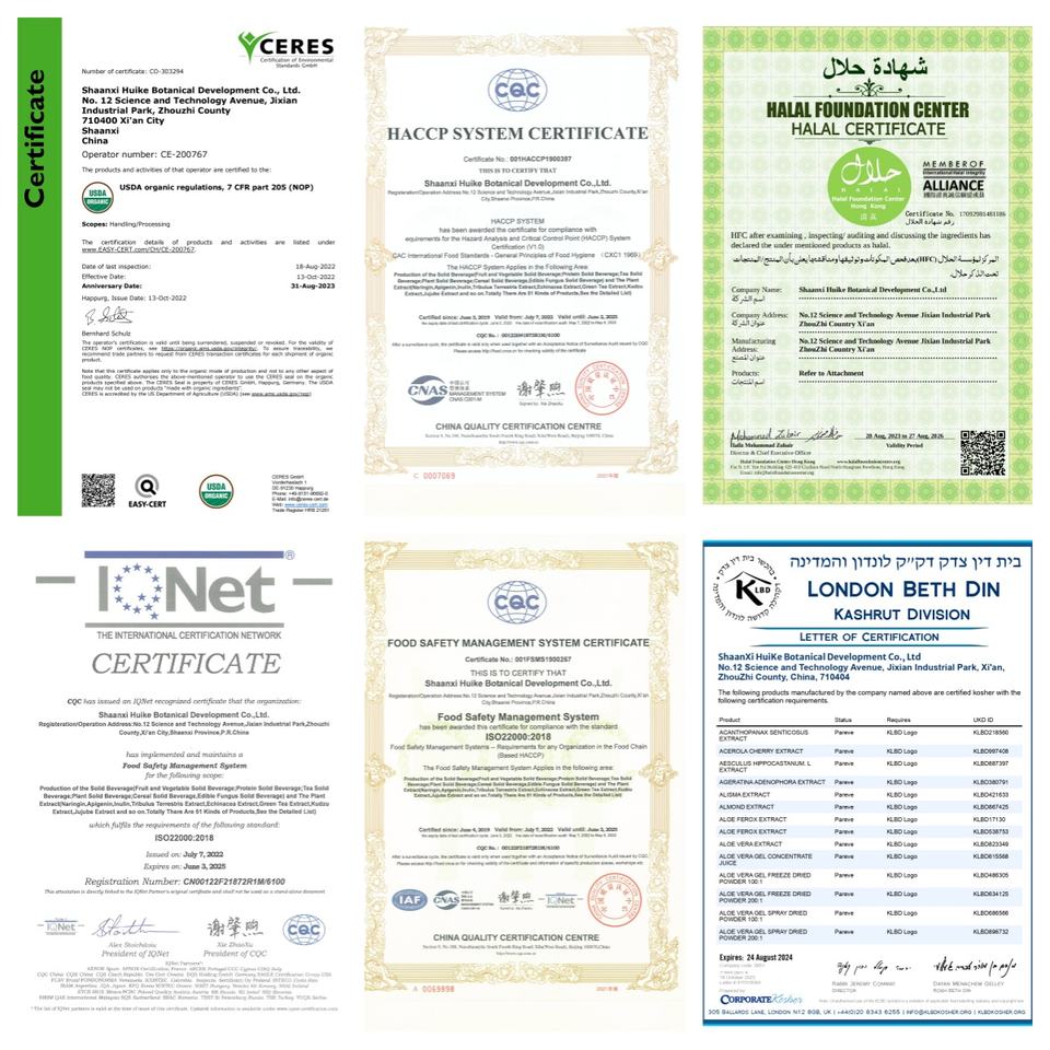 ใบรับรอง:ISO22000/ฮาลาล/โคเชอร์