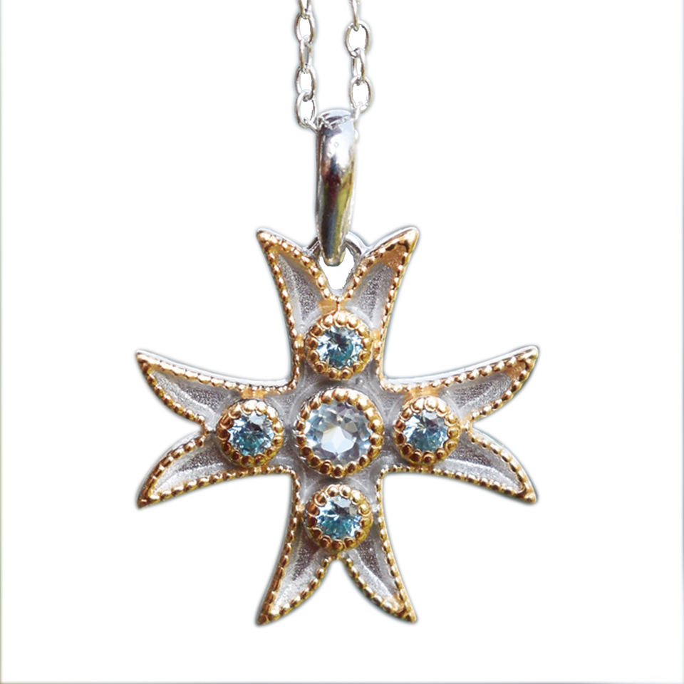 ชื่อผลิตภัณฑ์:สร้อยคอจี้พลอยบุษราคัมสีฟ้า