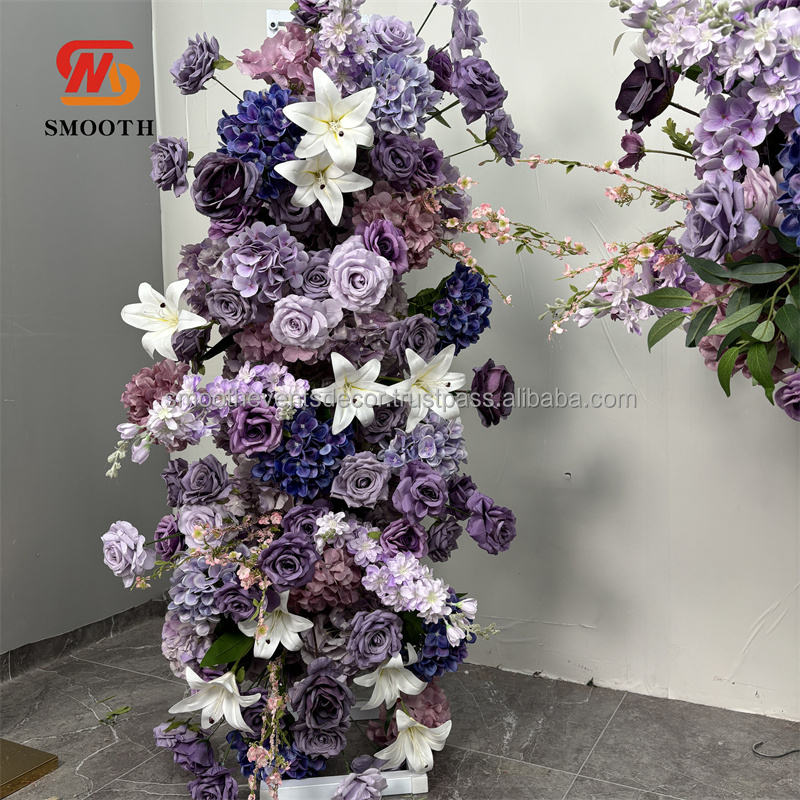 พวงดอกไม้ประดิษฐ์จากดอกกุหลาบลิลลี่ผ้าไหมสีม่วงพวงมาลัยเรียบสำหรับตกแต่งดอกไม้แบบใหม่