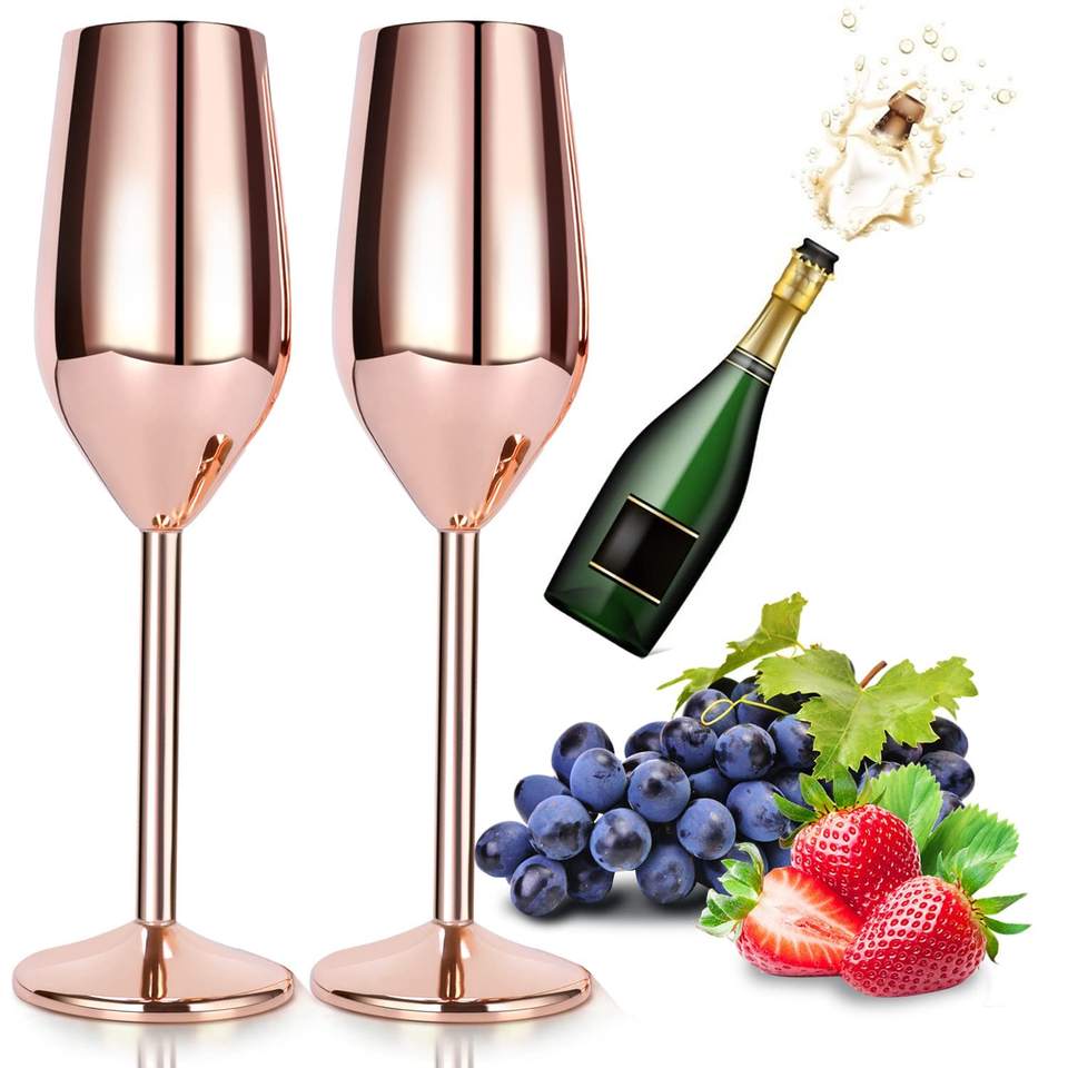 ถ้วยโลหะทองแดงสีทองไม่แตกถ้วยสแตนเลสสำหรับขลุ่ยแชมเปญอุปกรณ์สำหรับดื่มไวน์แดง