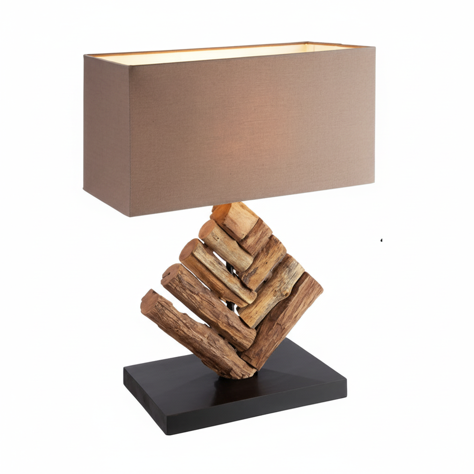 โคมไฟตั้งโต๊ะไม้ดีไซน์เป็นเอกลักษณ์46cmxW35cm ขนาดเหมาะสำหรับบ้านพร้อมฐานหลอดไฟ LED/ไฟเพดานแบบ E26