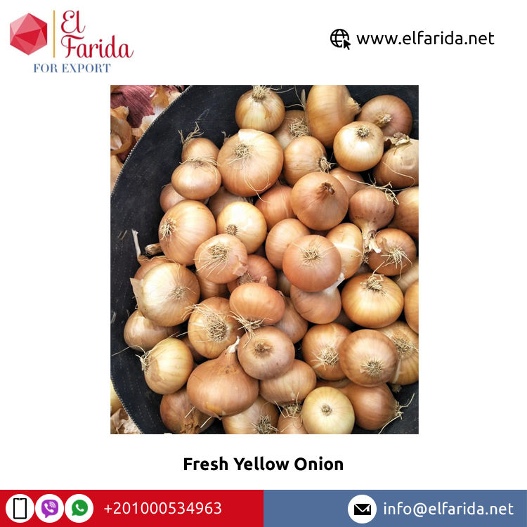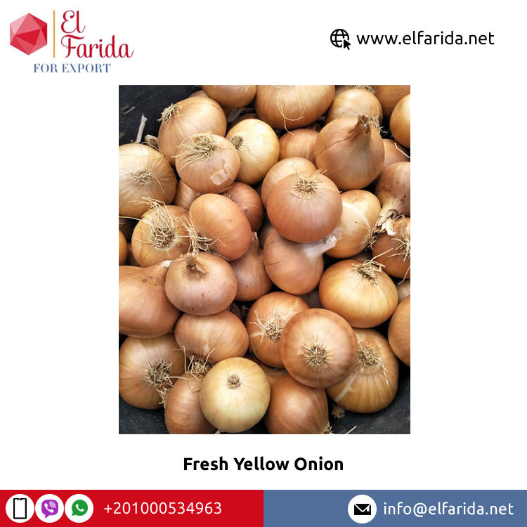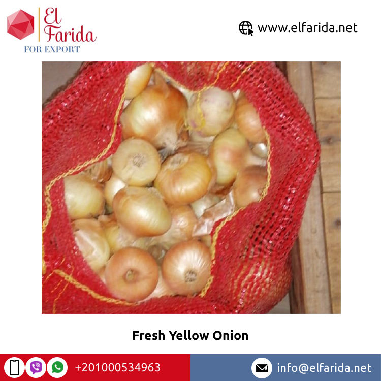 หัวหอมเหลืองสดเกรดพรีเมียมออร์แกนิก ยี่ห้อเอลฟาริดา บรรจุถุงตาข่าย 20/25 กก. ผลิตโดยตรงจากอียิปต์ ขายส่ง