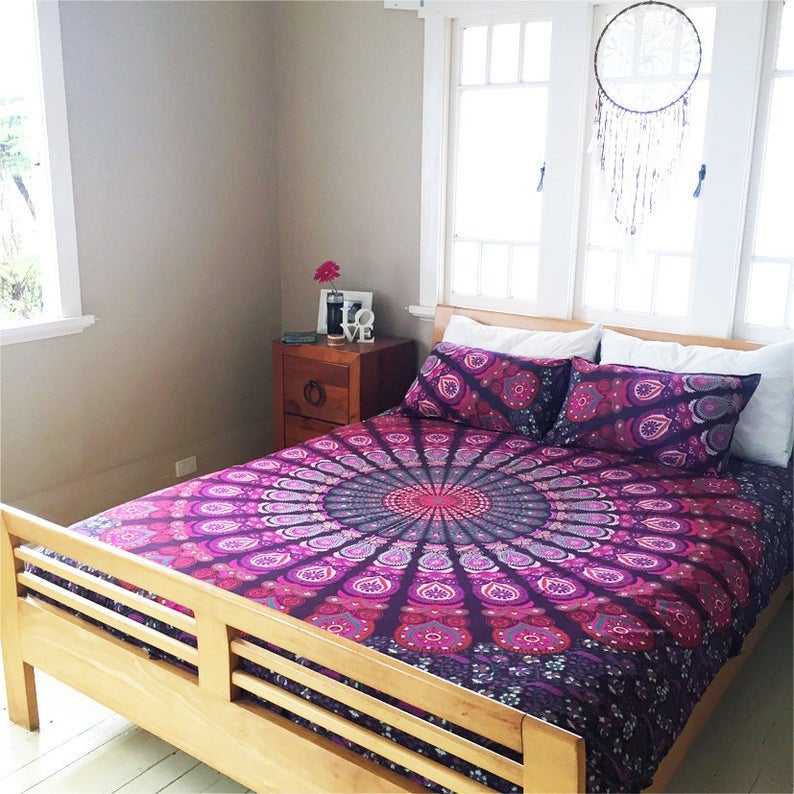 หมอนผ้าปูเตียงแบนทำด้วยมือขนาดควีนไซส์100% ผ้าคอตตอนแท้ลายดอกไม้ผ้าปูเตียงสไตล์อินเดียชุด3ชิ้น