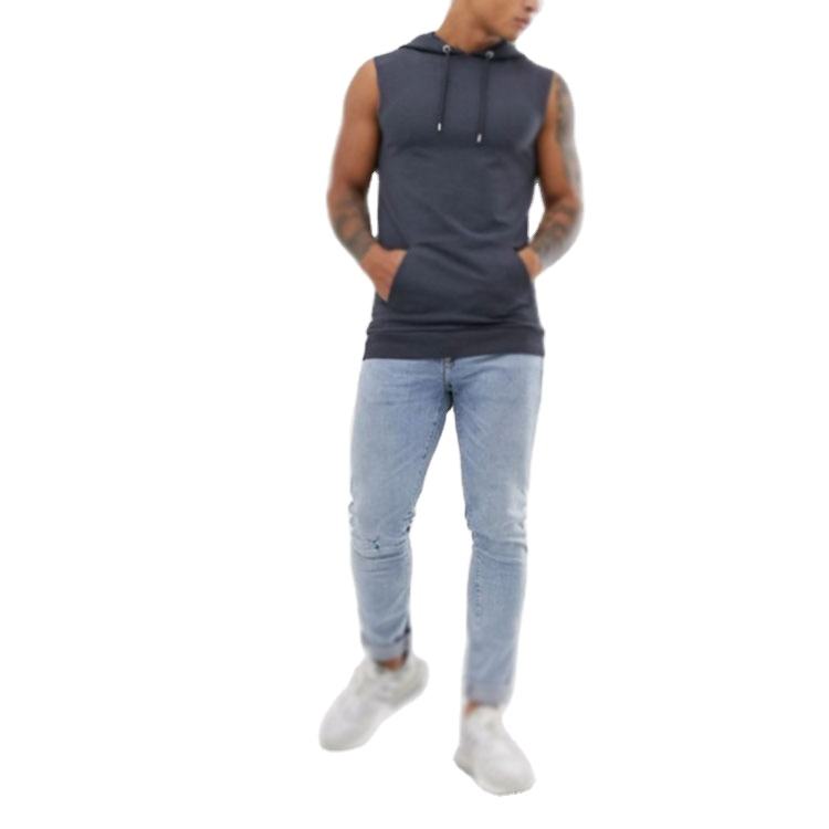เสื้อแขนกุดมีฮู้ดสำหรับผู้ชายเสื้อกล้ามฟิตเนสมีฮู้ดแขนกุดแห้งเร็วสำหรับใส่ออกกำลังกาย