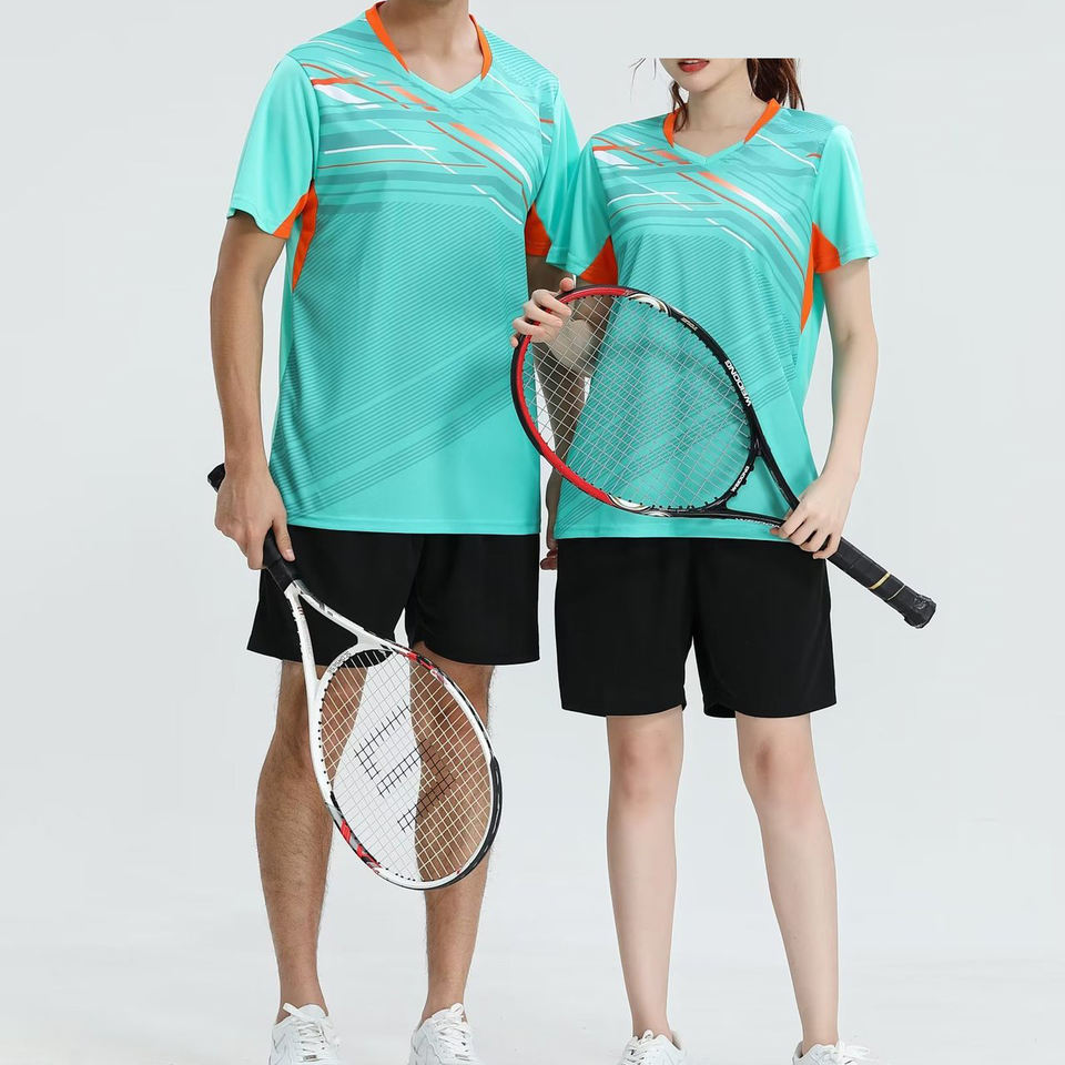 ขายส่งเสื้อกีฬาระเหิดแห้งเร็วตะกร้าเสื้อผ้าการฝึกอบรมเสื้อกีฬาแบดมินตันสําหรับผู้ชายและผู้หญิง