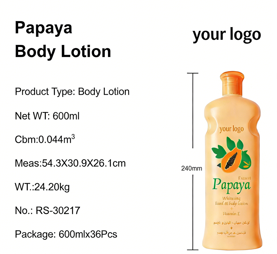โลชั่นบำรุงผิวกาย ROUSHUN สูตรมะละกอ สำหรับผิวขาวกระจ่างใสและให้ความชุ่มชื้น ขายส่ง