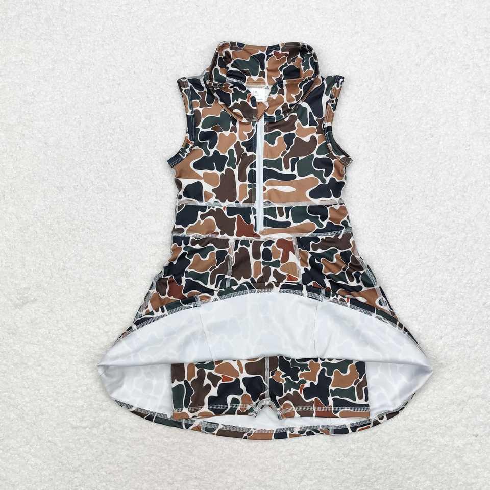 ชุดกีฬาลำลองสำหรับเด็กผู้หญิงวัยหัดเดิน RTS สีน้ำตาลลายพรางเสื้อโปโลแขนกุดมีสไตล์