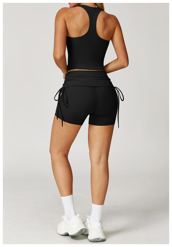 ชุดออกกำลังกายขายส่ง เสื้อกล้ามทรง Racerback กางเกงโยคะขาบาน กระชับสัดส่วน ยืดหยุ่นได้ดี กางเกงโยคะพับได้ ชุดออกกำลังกายสำหรับฟิตเนส ระบายอากาศด้านหน้า