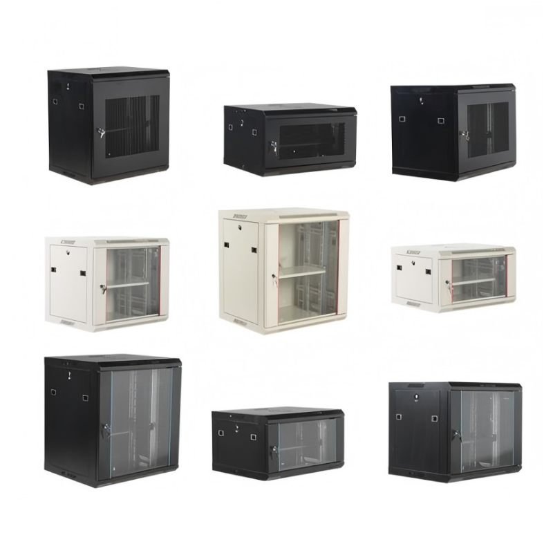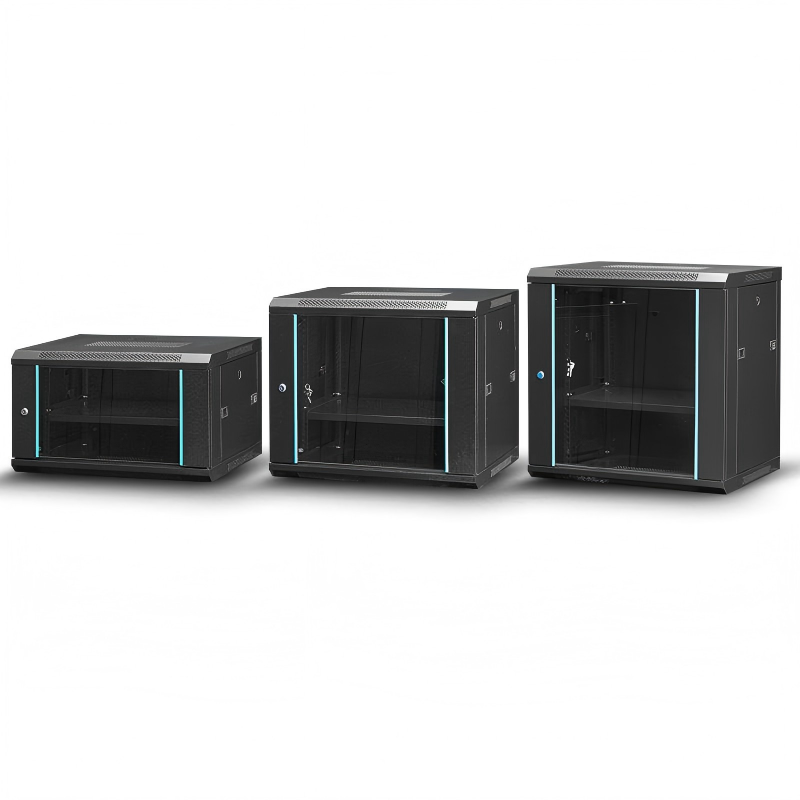 ตู้ติดผนัง19นิ้ว6U 4U เครือข่าย12U 9U 15U ข้อมูลศูนย์เซิร์ฟเวอร์ห้อง PDU พัดลมประตูกระจกตาข่ายประตู