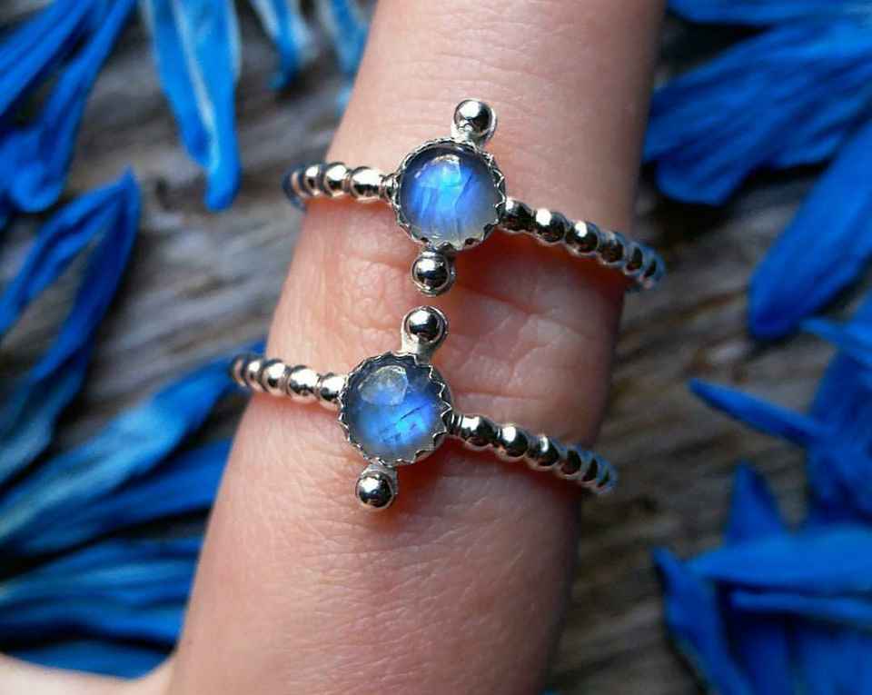 แหวนทำมือพลอยมูนสโตนสีรุ้งเครื่องประดับงบ