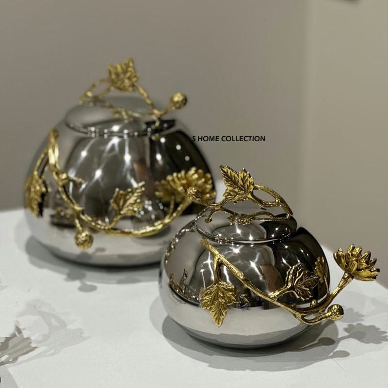 ชามอลูมิเนียมเคลือบทองสำหรับใส่ขนมขบเคี้ยวคอลเลคชั่น Ramzan ชามโลหะขัดเงามีลวดลายพิมพ์ลายใบไม้ชามเสิร์ฟถั่ว