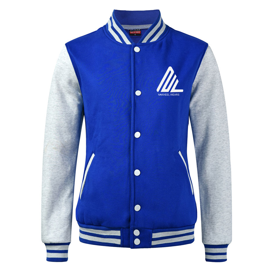 แจ็กเก็ตเบสบอลปักลายทางสีตัดกันลำลองสำหรับผู้ชายแจ็คเก็ตแขนยาวมีฮู้ดทีมตัวแทน