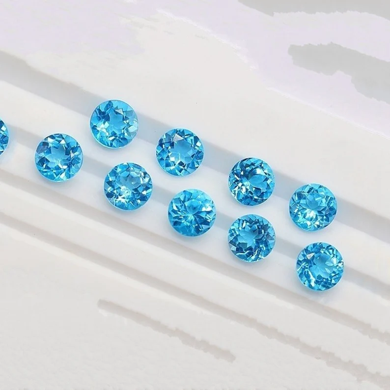 ราคาขายส่ง พลอยธรรมชาติ บลูโทแพซสวิส ทรงกลมเจียระไน 6x6 มม. ทรงเรเดียนท์คัท ผลิตในอินเดีย