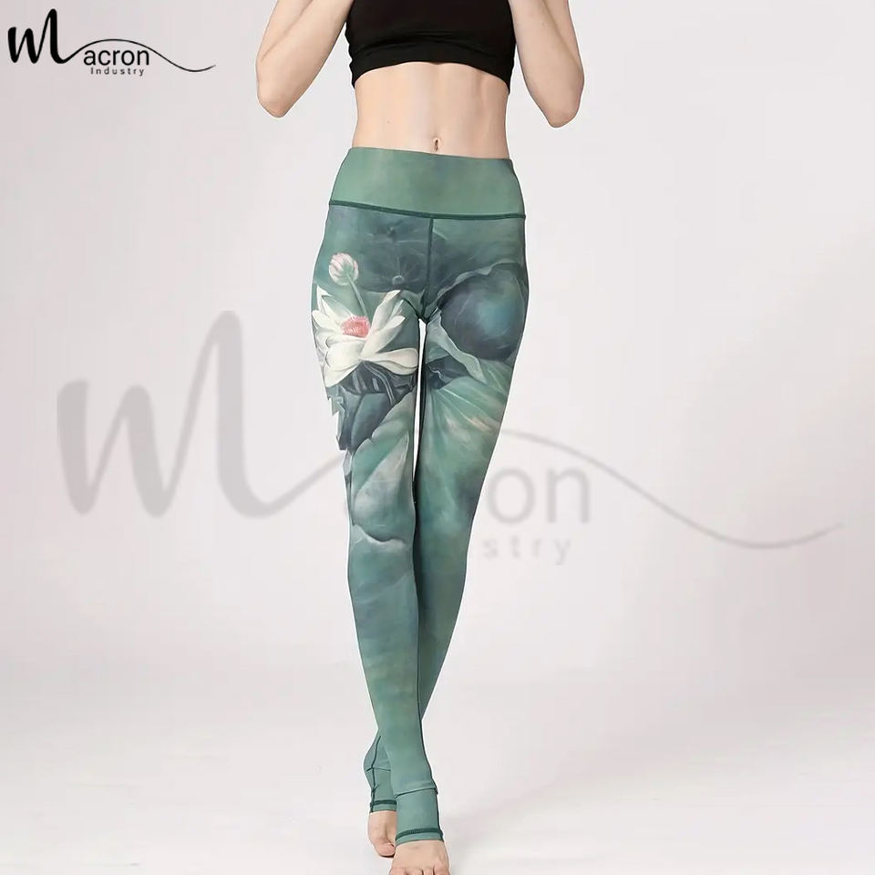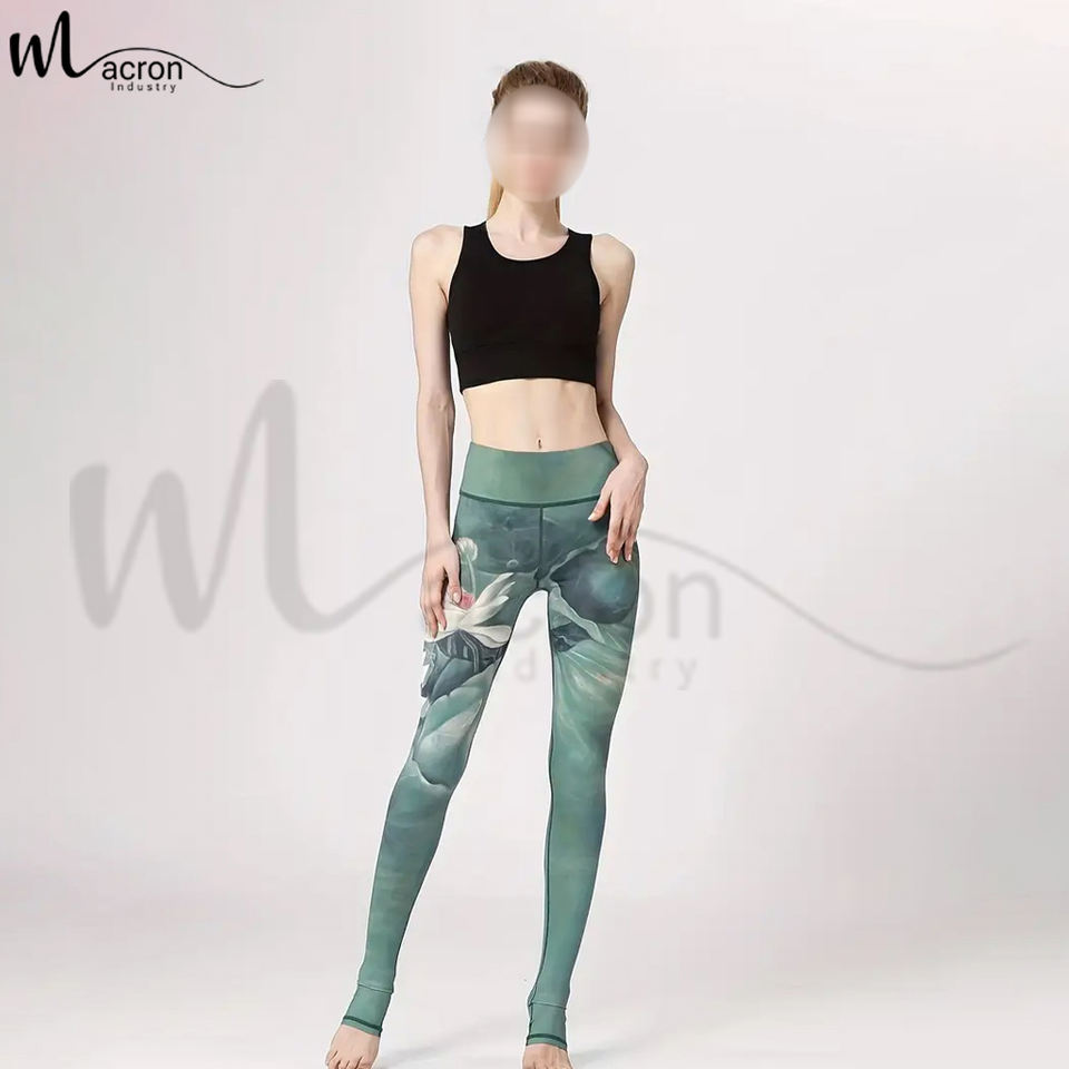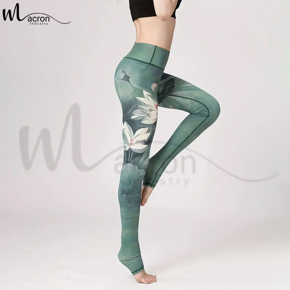 กางเกงเลกกิ้งสำหรับผู้หญิงกางเกงฟิตเนสผ้าตาข่ายเนื้อนิ่มพิมพ์ลายซับลิเมชัน