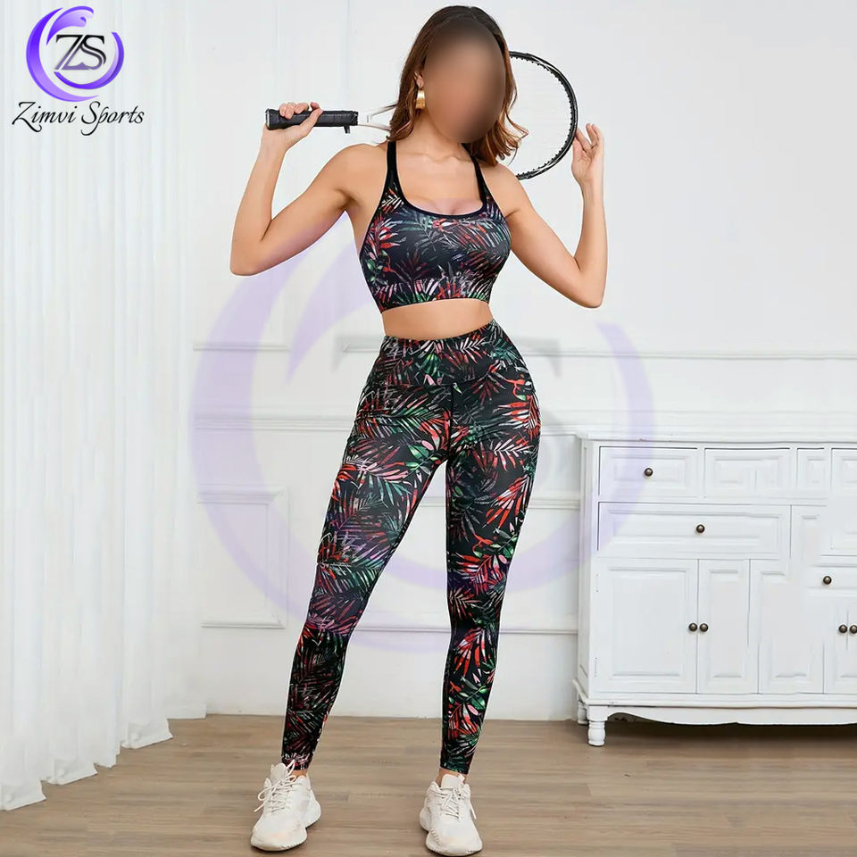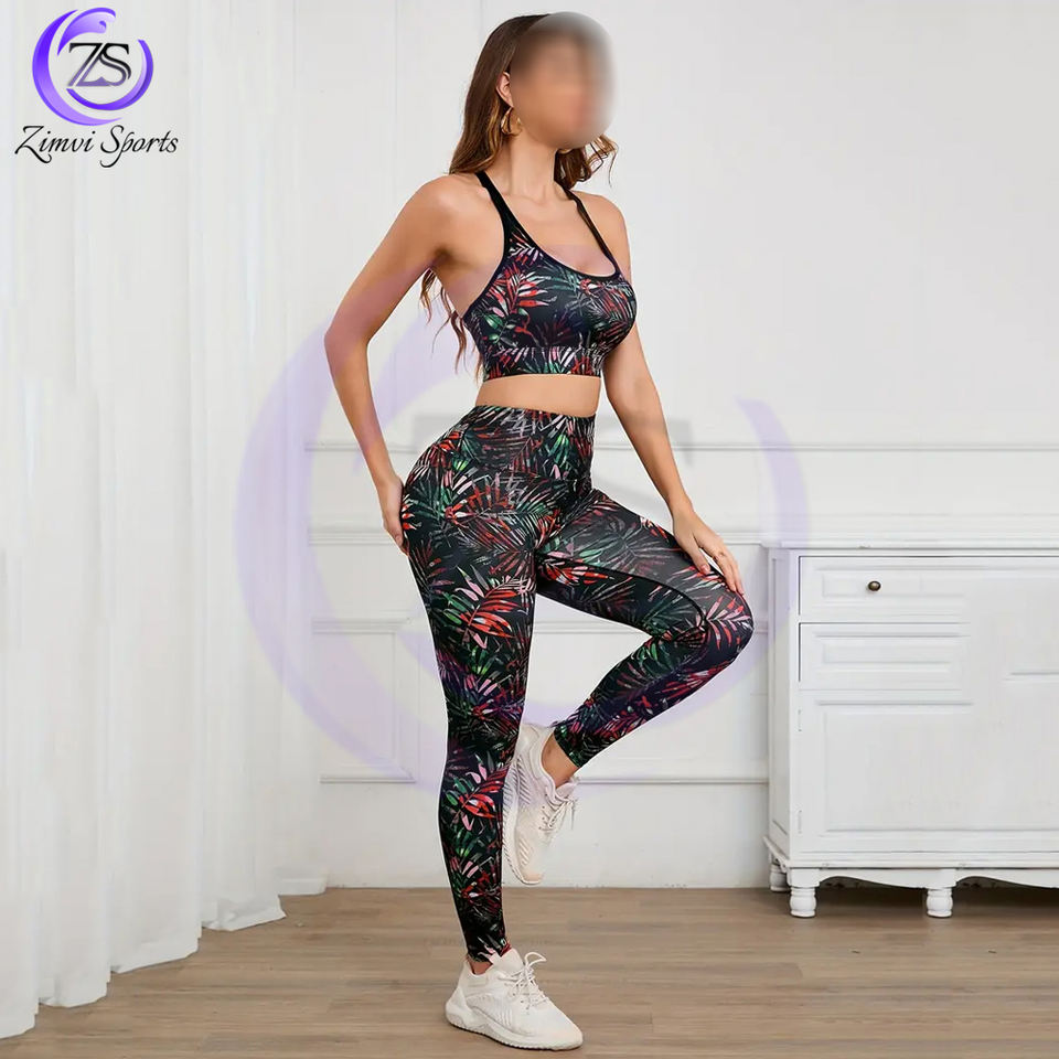 เซ็ตกางเกงชั้นในและกางเกงเลกกิ้งรัดรูปสำหรับเล่นกีฬาพิมพ์ลายซับลิเมชัน2ชิ้นดีไซน์เป็นเอกลักษณ์สำหรับผู้หญิงใส่เล่นโยคะ