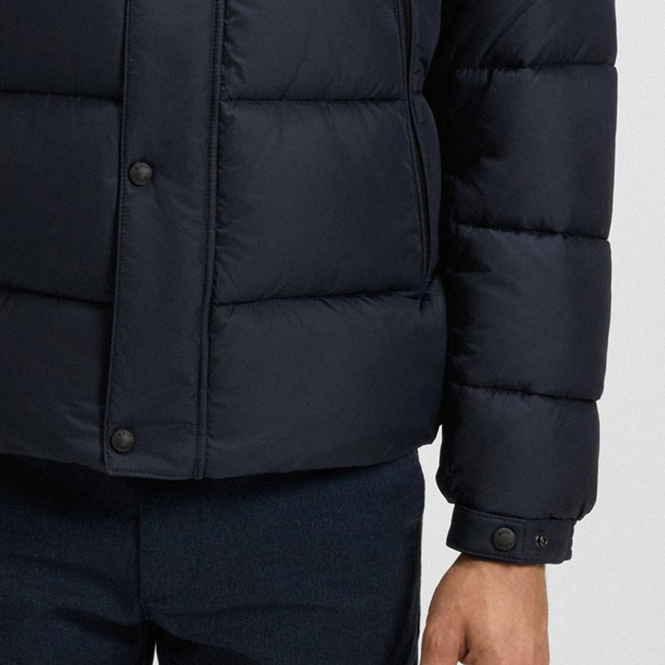 เสื้อแจ็คเก็ตพัฟเฟอร์ผู้ชายแบบมีฮู้ดปรับได้ ราคาขายส่ง สีพื้น / แขนยาว มีกระเป๋าซิปด้านข้าง วัสดุคุณภาพสูง