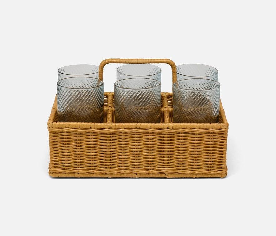 ตะกร้าหวายใส่แก้วน้ำ งานแฮนด์เมด สำหรับจัดระเบียบบนโต๊ะอาหาร ใช้ในครัว รับประทานอาหารกลางแจ้ง หรือเสิร์ฟ