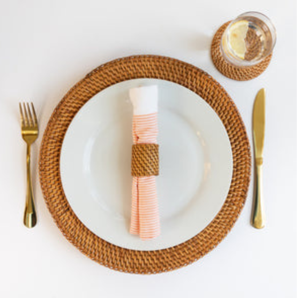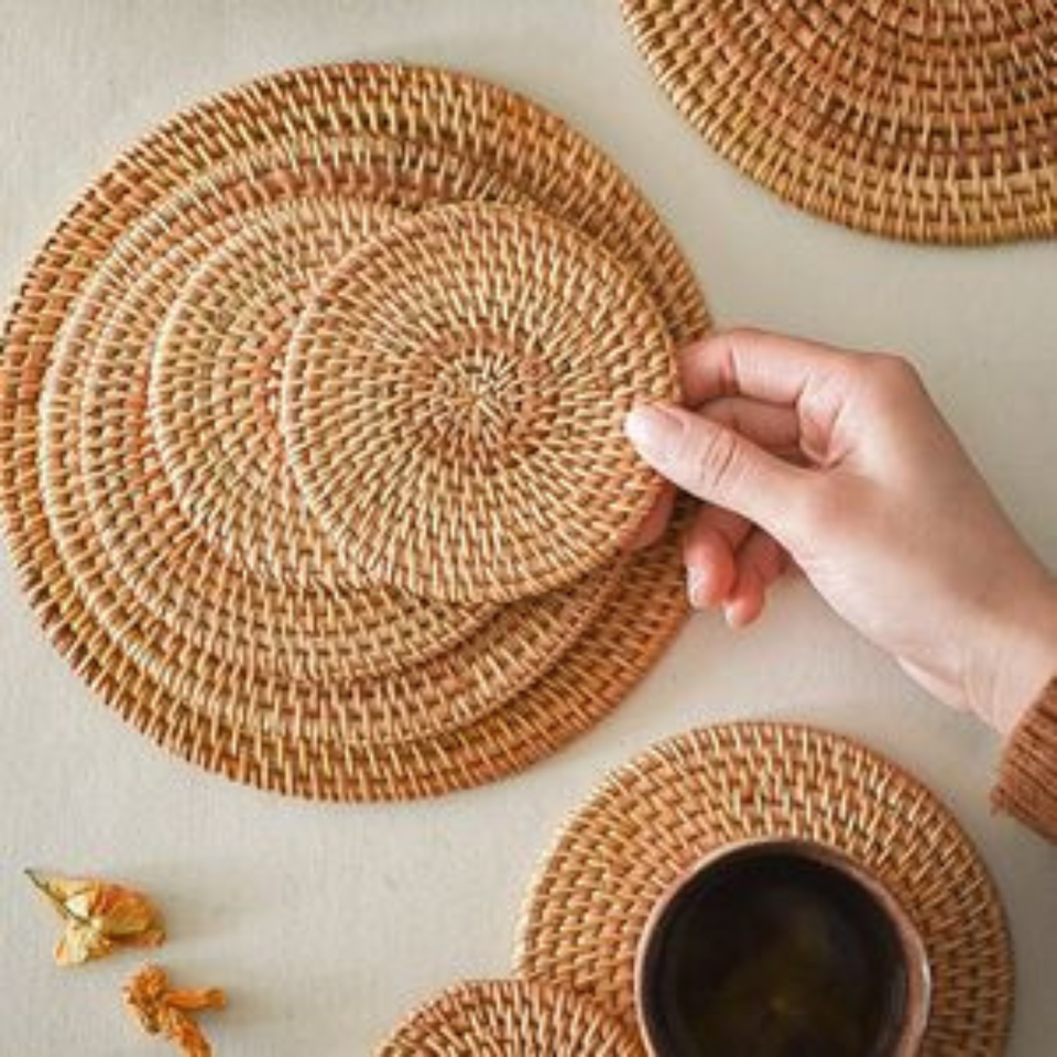 แผ่นรองหวายสานเป็นมิตรต่อสิ่งแวดล้อมสำหรับตกแต่งโต๊ะอาหารในโอกาสงานปาร์ตี้ขายส่ง