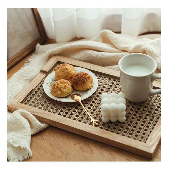 ขายส่งหวายกลม/สี่เหลี่ยม/สี่เหลี่ยมผืนผ้าจากเวียดนามหัตถกรรมที่มีมือจับ-ถาดเสิร์ฟสำหรับขนม